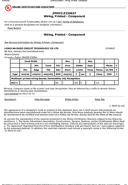 工廠搭建了ISO-9001、T/S16949、ISO14001的管理體系并通過認(rèn)證,產(chǎn)品符合CQC、UL、IPC、RoHS等